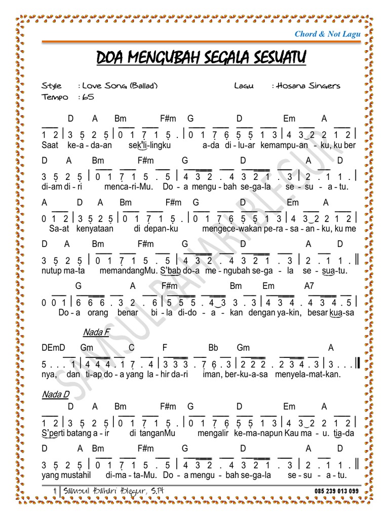 Kiranya Engkau Memberkati Aku Berlimpah-limpah Baca juga. Not Angka Lagu Rohani. Semua Baik Franky Sihombing C Pdf.