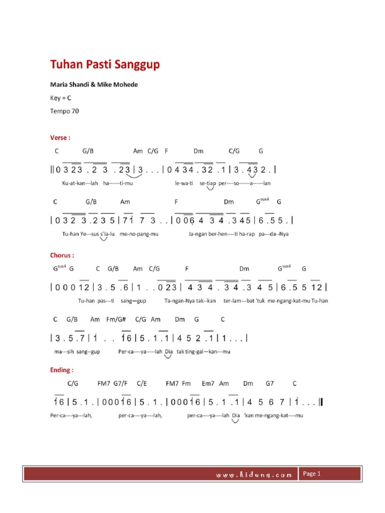Versi Version 2 1. Tuhan pasti sanggup kuatkanlah hatimu lewati stiap persoalan tuhan yesus slalu menopangmu jangan berhenti harap padanya reff. Chord Gitar dan Lirik Tuhan Pasti Sanggup - Maria Shandy Kuatkanlah Hatimu Berikut Ini adalah chord gitar dan lirik lagu Tuhan Pasti Sanggup yang dipopulerkan oleh Mike Mohede dan Maria Shandy.