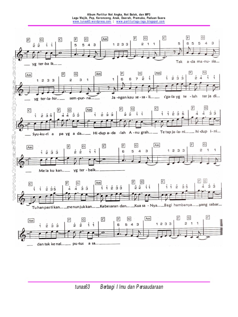 Not angka lagu Sewu Kuto - Brainlycoid Ragaz Not. Demikianlah Not Angka Pianika Lagu Jangan Menyerah - DMasiv. Dalam materi not balok kita mengenal beberapa istilah yang terdapat didalam materii-materi not.