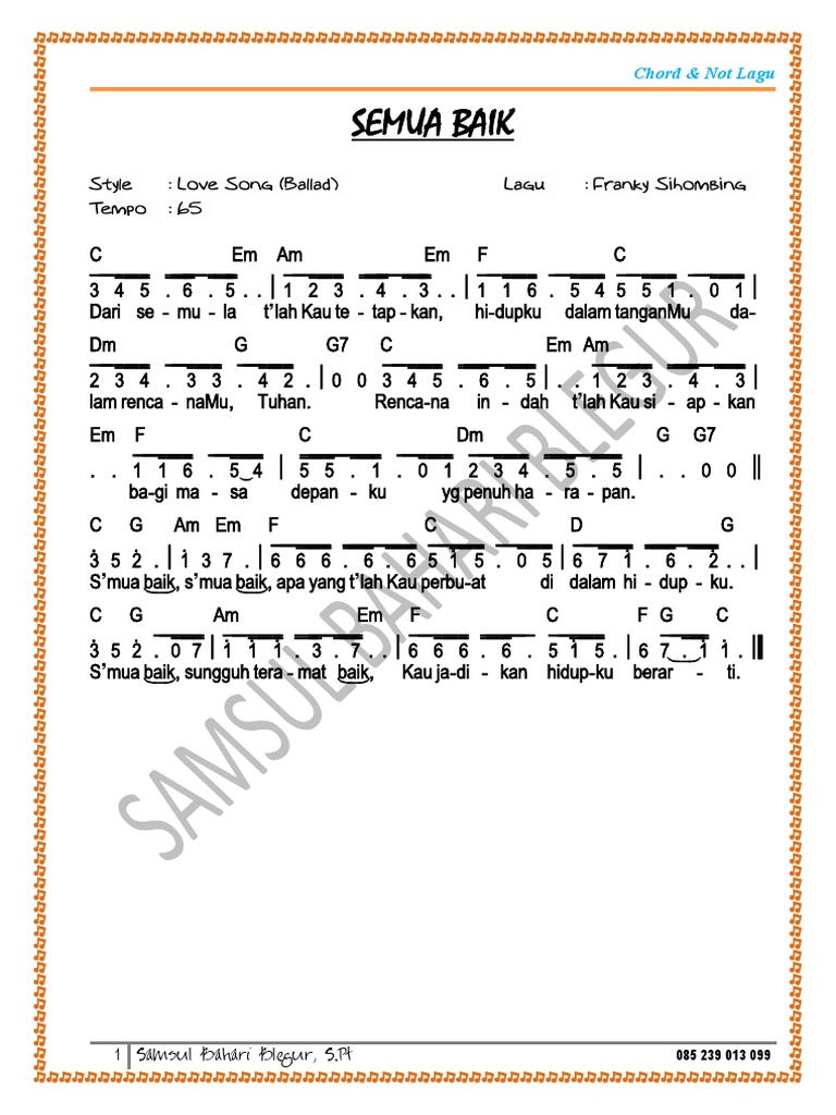 Chord Dan Not Angka Lagu Semua Baik. Untuk Mendapatkan E-BookBuku Lagu Rohani Beserta Chord dan Not Angka dan Update Lagu terbaru Formatnya pdf Ada 100an Lagu untuk Belajar KeyboardGitar dll caranya. Facebook Semua Baik Franky Sihombing C Semua baik w Keyboard Chords - Chordify Semua Baik Franky Sihombing Cpdf Facebook lagurohani-terbaru09 Facebook Chord Keranjang niat hati sampai kua ekspektasi tua bersama mau.